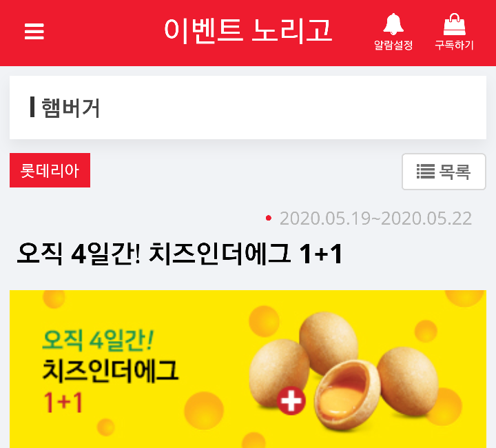 | 오늘의 이벤트 - 오직 4일간! 치즈인더에그 1+1 (0) | 2020.05.21 |