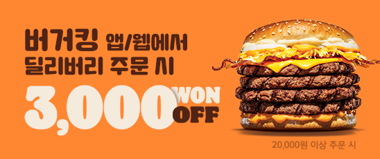 안녕하세요! 여러분들을 위해 새로운 할인 정보를 가져왔어요. 오늘은 버거킹에서 진행하는 딜리버리 이벤트에 대해서 알려드릴게요. 버거킹에서 딜리버리로 20,000원 이상의 주문을 하시면 3,000원의 할인 혜택을 받을 수 있답니다. 이런 기회를 놓치지 말고, 맛있는 버거킹 메뉴를 딜리버리로 주문해보세요!