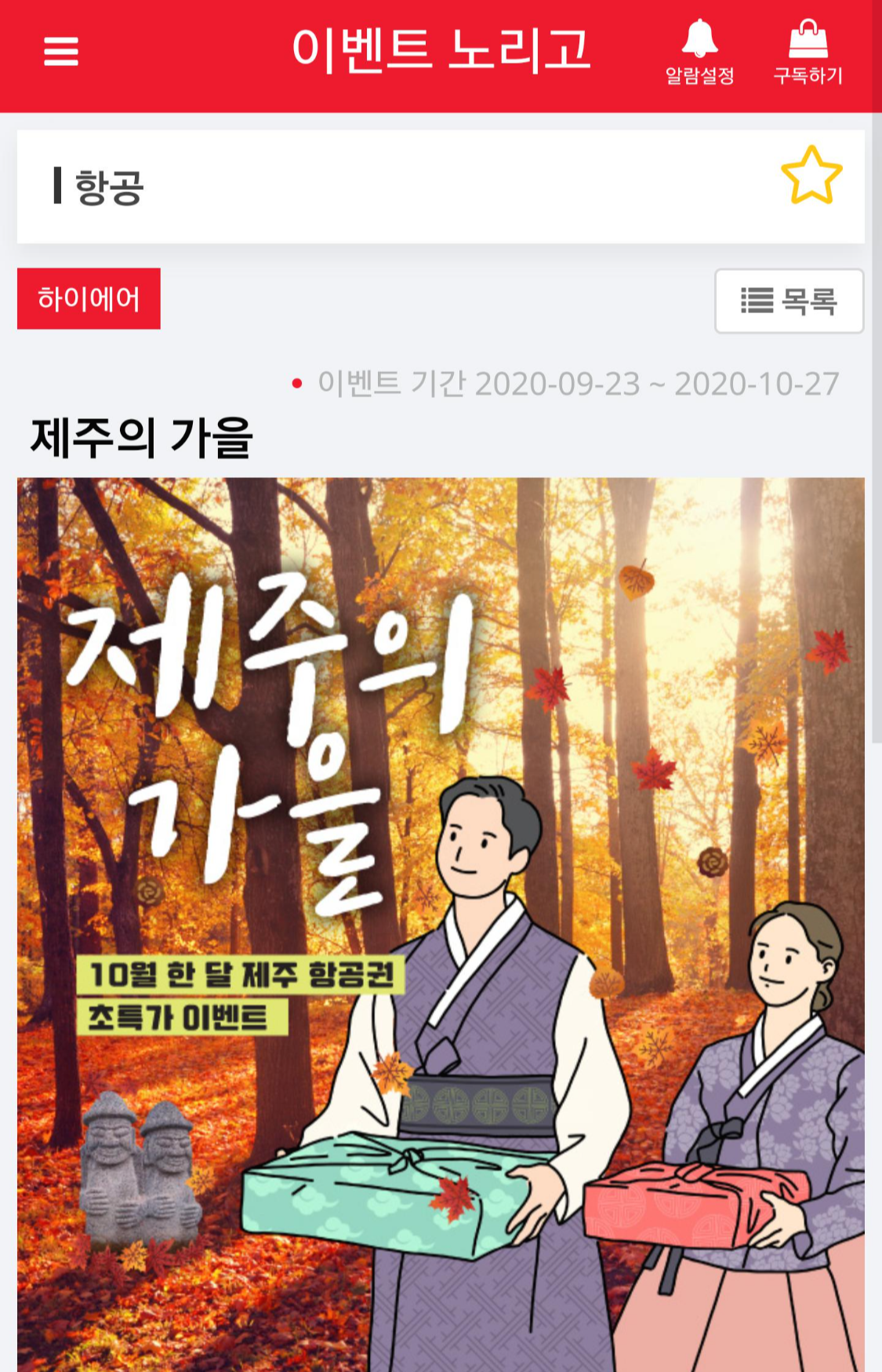 탑승 기간 : 2020/10/05 ~ 2020/10/24상세 페이지 주소 : www.hi-airlines.com/v/comn/board/ev/event/ing/detail/1185
