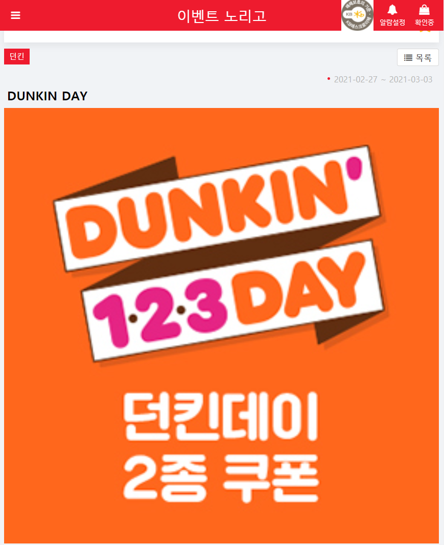 상세 페이지 주소 : www.dunkindonuts.co.kr/event/view.php?S=4151&flag=