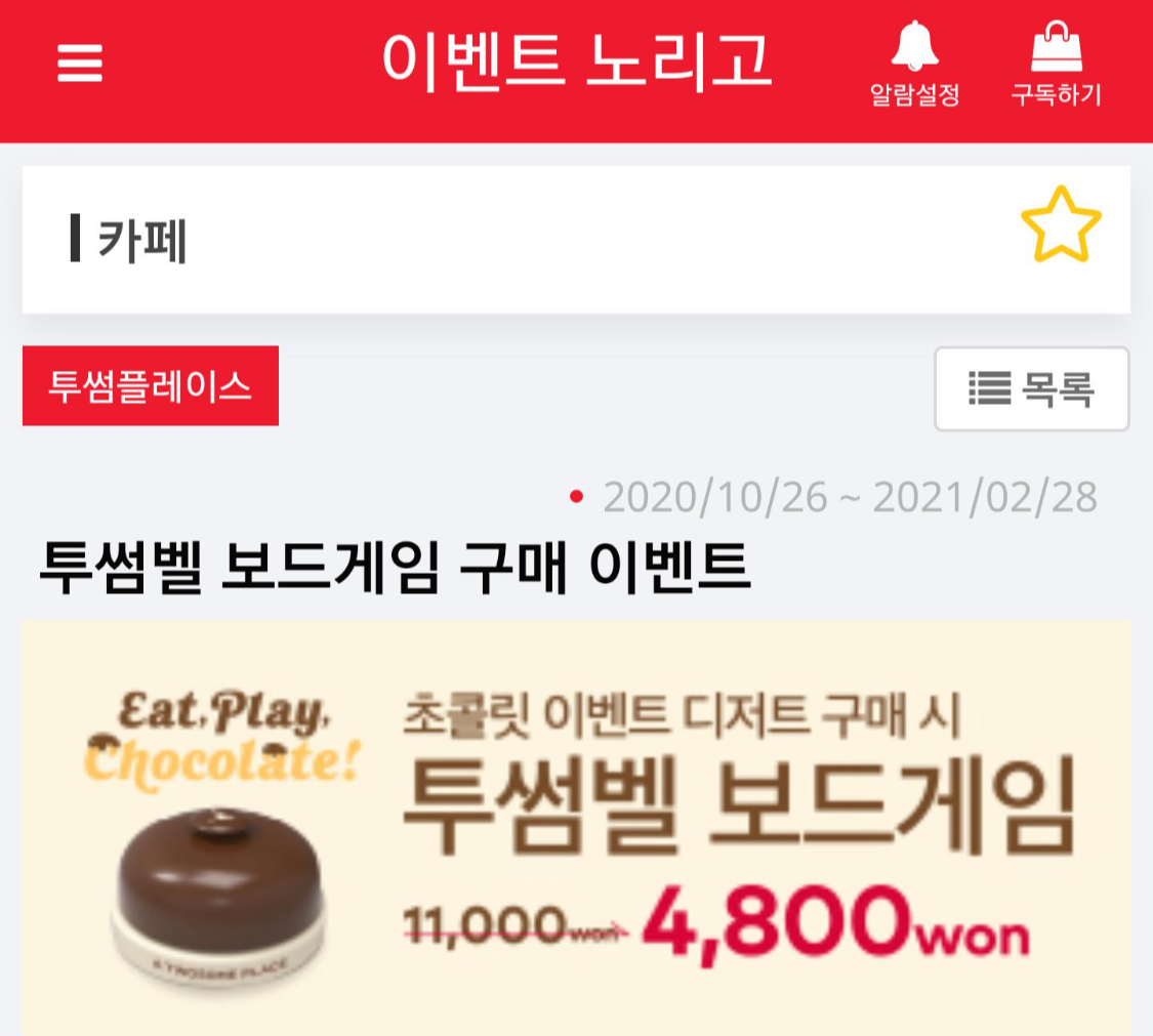 << [투썸플레이스]투썸벨 보드게임 구매 이벤트 >>