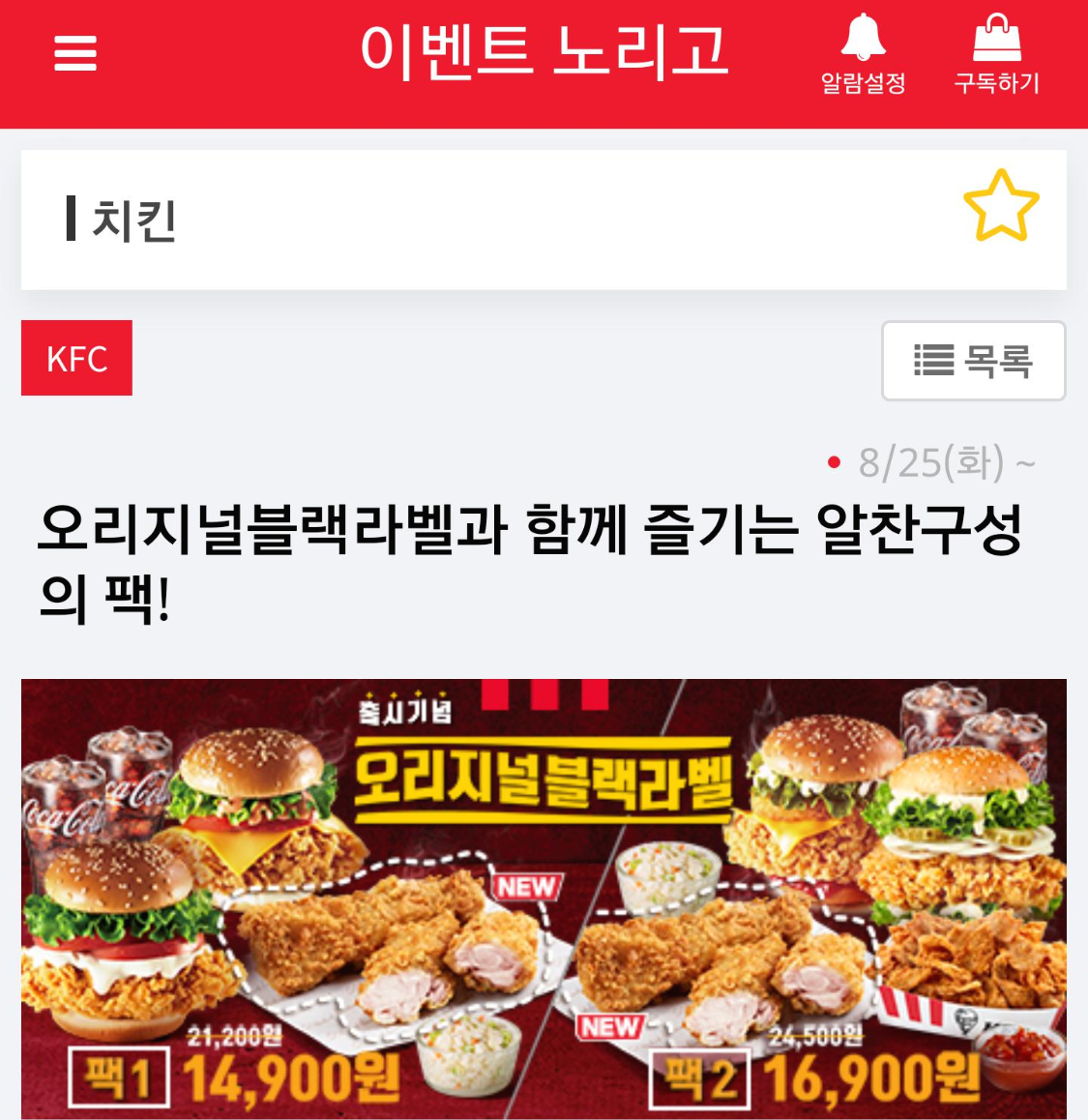 << [KFC]오리지널블랙라벨과 함께 즐기는 알찬구성의팩! >>