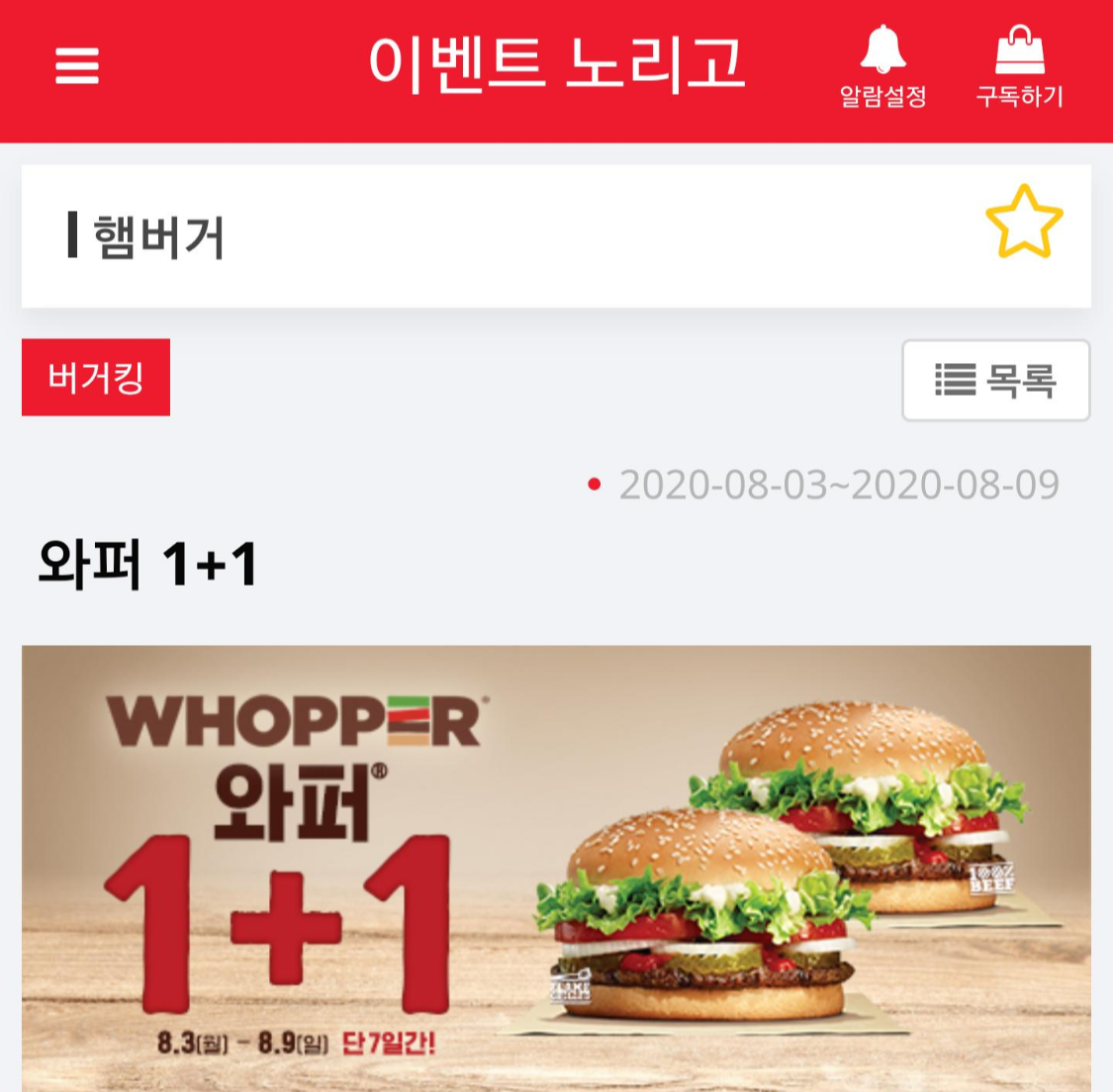 << [버거킹]와퍼 1+1 >>
