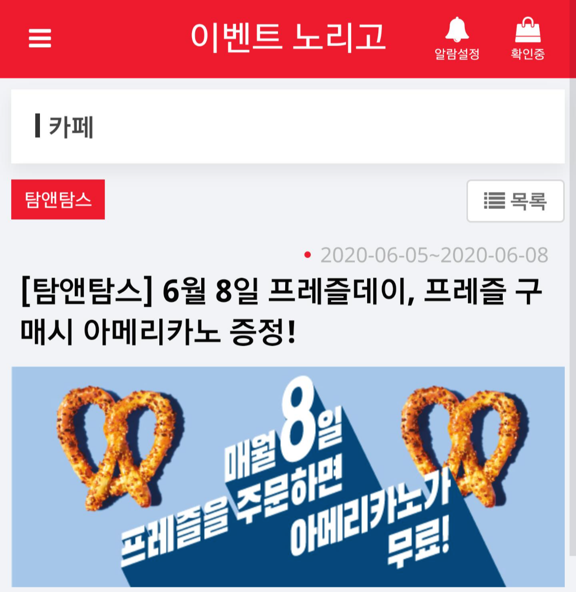 << [탐앤탐스] 6월 8일 프레즐데이, 프레즐 구매시 아메리카노 증정!>>