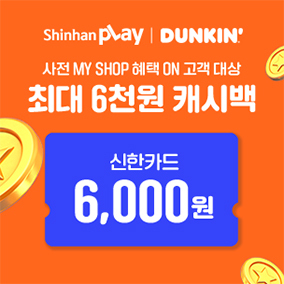 Shinhan VY와 함께하는 DUNKIN®의 특별한 이벤트가 찾아왔어요! 매우 흥미로운 혜택이 있는 이번 이벤트를 놓치지 마세요. 아래에서 자세한 내용을 확인해보세요!