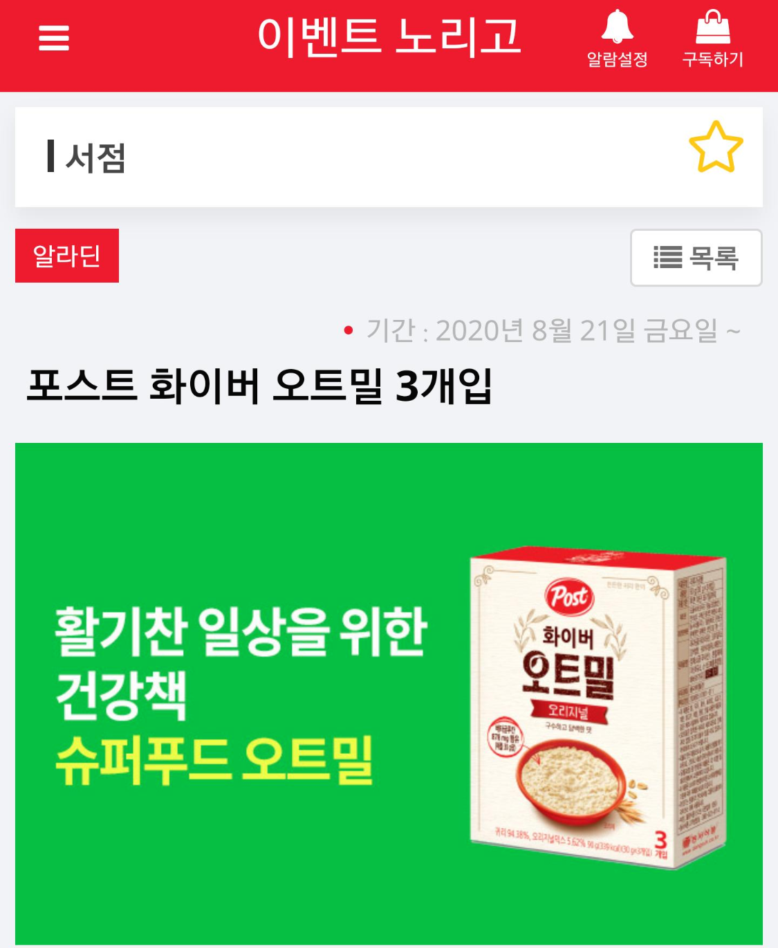 << [알라딘]포스트 화이버 오트밀 3개입 >>